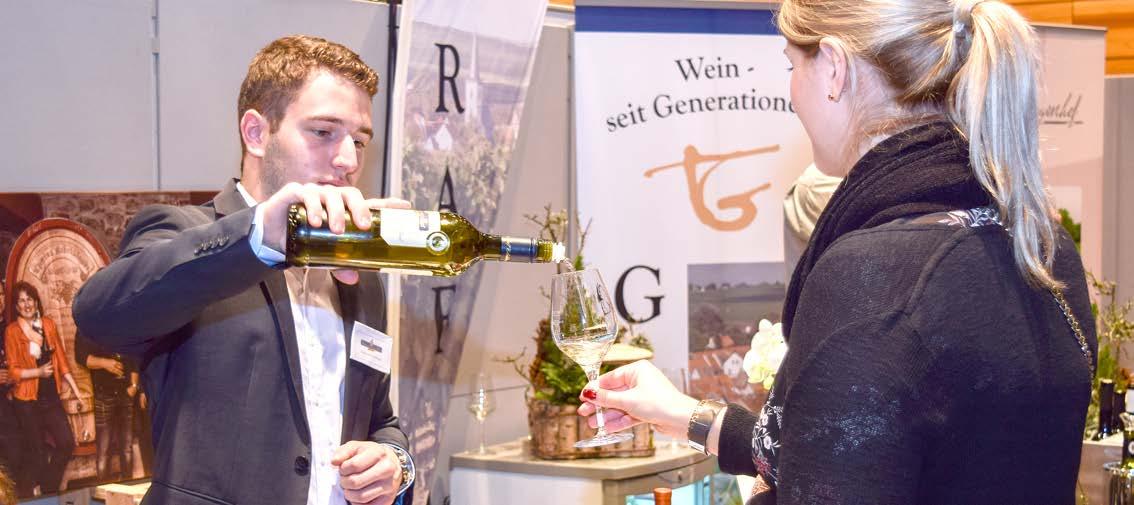 Probierenein.DieBesucher könnensichauferleseneWeine von14Weingüternfreuen.FeinkosthändlerbietenunteranderemSpezialitätenwieMarmelade,Chutneys,Spirituosenund weitereDelikatessenanund komplettierendamitdasumfangreicheAngebot.DieVolksbank-LoungelädtzumVerwei-