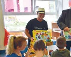 GroßwardieFreudebeiden kleinenNachwuchs-Künstlern, diedirektdieneuenSpielsacheninAugenscheinnahmen undeifriglosbauten.Aberauch Bildungs-undSozialdezernent WaldemarHerderundKitaLeiterinYvonneDeibertzeigten sichangetanvondemherzlichenDankeschöndesWormser Mundart-Dichters–und schmiedetenbereitsneuePläne fürThomasDiefenbach.Die IdeefüreinenMundart-Kurs fürdieKita-KinderkamWalde-