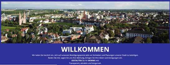 nochbiszumEndedesJahres auf www.worms-gestalten.de an derdigitalenZukunftderStadt mitwirken.DieBeteiligungsplattformrichtetsichausdrücklichanalleWormserBürger,die denDigitalisierungsprozessin Wormsmitgestaltetwollen.Auf derPlattformkönnendieTeilnehmerzumeineneinePriorisierungdersechsbereitserwähntenThemenfeldernvornehmen.