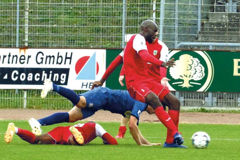 DieBefürchtungenhabensichleiderbestätigt.EineschwereKnieverletzungbedeutetfürJeanIvesM`votodasSaisonaus. Foto:FelixDiehl Ertrafzumwichtigen2:2-Ausgleich;leidermussteThorbenFrey(rechts)kurze ZeitspätermiteinerGelbenKartefünfMinutenaufdieStrafbankunddasDilemmafürdieTGWbegann.Foto:FelixDiehl