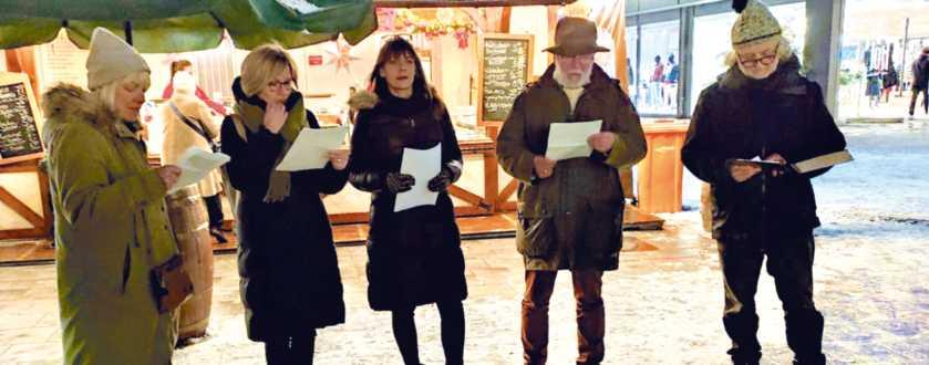 VieleFamilien,Paare,aber auchGruppenwarengekommen,umweihnachtlicheMusik zuhörenundbeidentraditio-