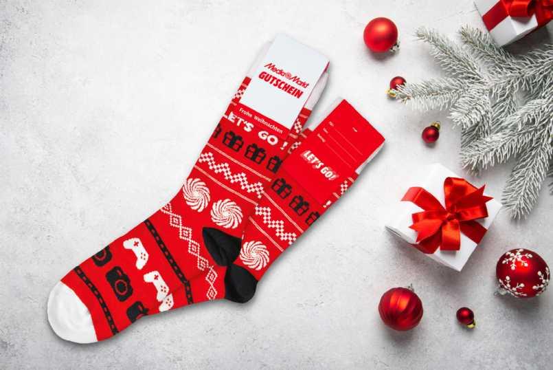 NebendenGutschein-SockensindverschiedeneweihnachtlicheMotiveimMediaMarktWormserhältlich.