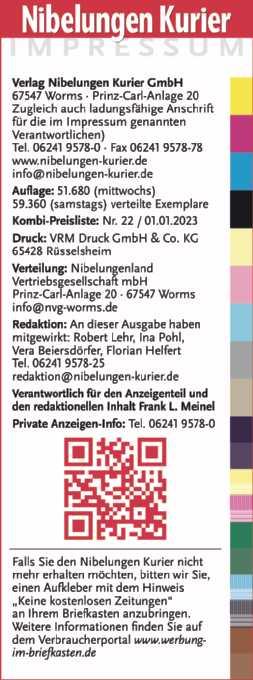 ZuBeginndesJahreshatsich dasErscheinungsbilddesNibelungenKuriersverändert,soerscheintdieMittwochsausgabe fortanineinemetwaskleineren fünfspaltigenunddieSamstagsausgabeineinemetwasgrößerensiebenspaltigenFormat. HierzubatenwirunsereLeser umRückmeldung.