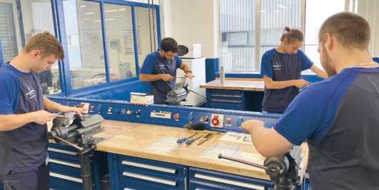 RezeptfüreinefundierteAusbildung Mannehme:neueWerkbänke,eineGroßinvestitionin modernsteelektrischeAusbildungsmittel,aktualisierteAusbildungsinhalteundfertigistdas neueAusbildungskonzept.Im vergangenenJahrhabenwirunsereAusbildungswerkstattin Wormskräftigmodernisiertund bietenseitdemdenkompletten elektrischenTeilderMechatronikerausbildungbeiunsvorOrtan.