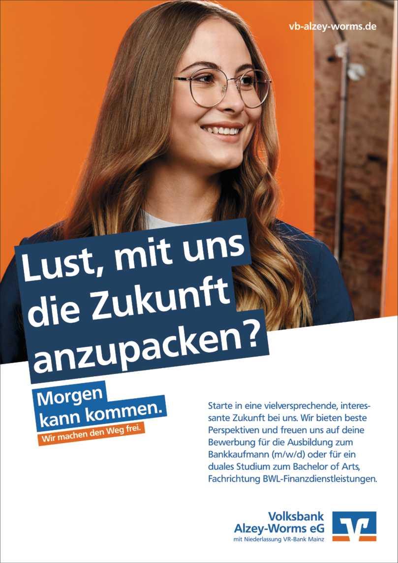 Anzeigensonderveröffentlichung | Samstag,21.Januar2023 22 BERUFSSTART Rheinhessen steht bei uns vorne. Ausbildung und Karriere bei Deiner Sparkasse. rheinhessen-sparkasse.de/jobs Anzeige_NK_Ausbildung_137x220mm.indd 1 12.01.2023 09:30:13 Ausbildung Mechatroniker (m/w/d) www.reifenhauser-bf.com The Extrusioneers Ausbildung Mechatroniker (m/w/d) www.reifenhauser-bf.com