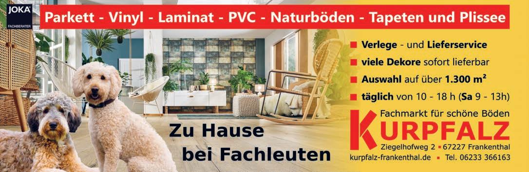 MEINSCHÖNES ZUHAUSE DIESEITENFÜRBAUEN,WOHNEN&LEBEN Anzeigensonderveröffentlichung Design: Jean-Pierr udebert nfigur jori. m/ nfigurator innovativeseating comfortsince 1963 Möbelhau sH ut hmachere.K .· Gr ünstadt ·w ww.moebel-huthmacher de Sitzkomfortträgt eine Signatur:JORI Entdeckenund genießenSieden ultimativen Sitzkomfor unsererAu YOGA DESIGN / VERHAERT NEW PRODUCTS / 1996 Legendäres Modell, 2850.– € in Leder, schwarz statt 3754.– € D esigned for dynamic seati ng Möbelhaus Huthmacher e.K. · Grünstadt · www.moebel-huthmacher.de 3896.SONDERPREIS komplettes Boxspringbett ohne Deko, 180/200 cm, Kopfteilbezug abnehmbar, 2 Bezugsfarben, nur solange Vorrat reicht YOGA DESIGN / VERHAERT NEW PRODUCTS / 1996 Legendäres Modell, eal jetzt ab 2666 EUR in Stoff anstatt 3137 EUR legendärer Jubiläumspreis KANAL-REINIGUNG GUTSCHEINüber20,–EUR IsdeAbflusswidderzu,hilftde imNu! 23_01s BobenheimerStraße8 67547Worms 24Std.-Telefon: (06241)972011 einzulösenbis 31122023 KeineBarauszahlungmöglich. EinGutscheinpro Auftrag!