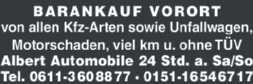 3000/3200 KFZ BAR ANKAUF Alle Fahrzeuge PKW‘s, Busse, Geländewagen, Wohnmobile, Wohnwagen, Oldtimer, Traktoren, Bagger. Alles anbieten! (Baujahr, km, Zustand egal). Sofort Bargeld! Jederzeit erreichbar. 06158 -