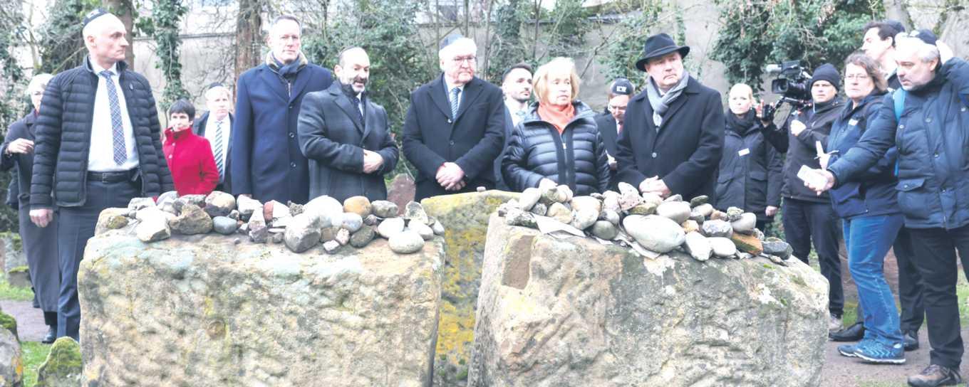 unterAufsichtderSicherheitsbehörden.Derrheinland-pfälzischeInnenministerMichael Ebling,Oberbürgermeister AdolfKessel,AharonRanVernikoysky,derRabbinerderjüdischenGemeindeMainzRheinhessensowiediePräsidentinderdeutschenUNESCO-KommissionDr.Maria BöhmernahmenBundespräsidentFrank-WalterSteinmeier