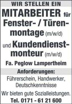 BevorzugtausHeizungsbauo.InstallationsgewerbemitFSKl.B.Bewerbungbitte schriftlichoderperE-Mailan: HerrnsheimerHauptstraße35·67550Worms