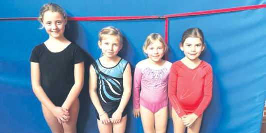 StolzpräsentiertendievierTurnerinnendesTVMonsheimihreÜbungen.