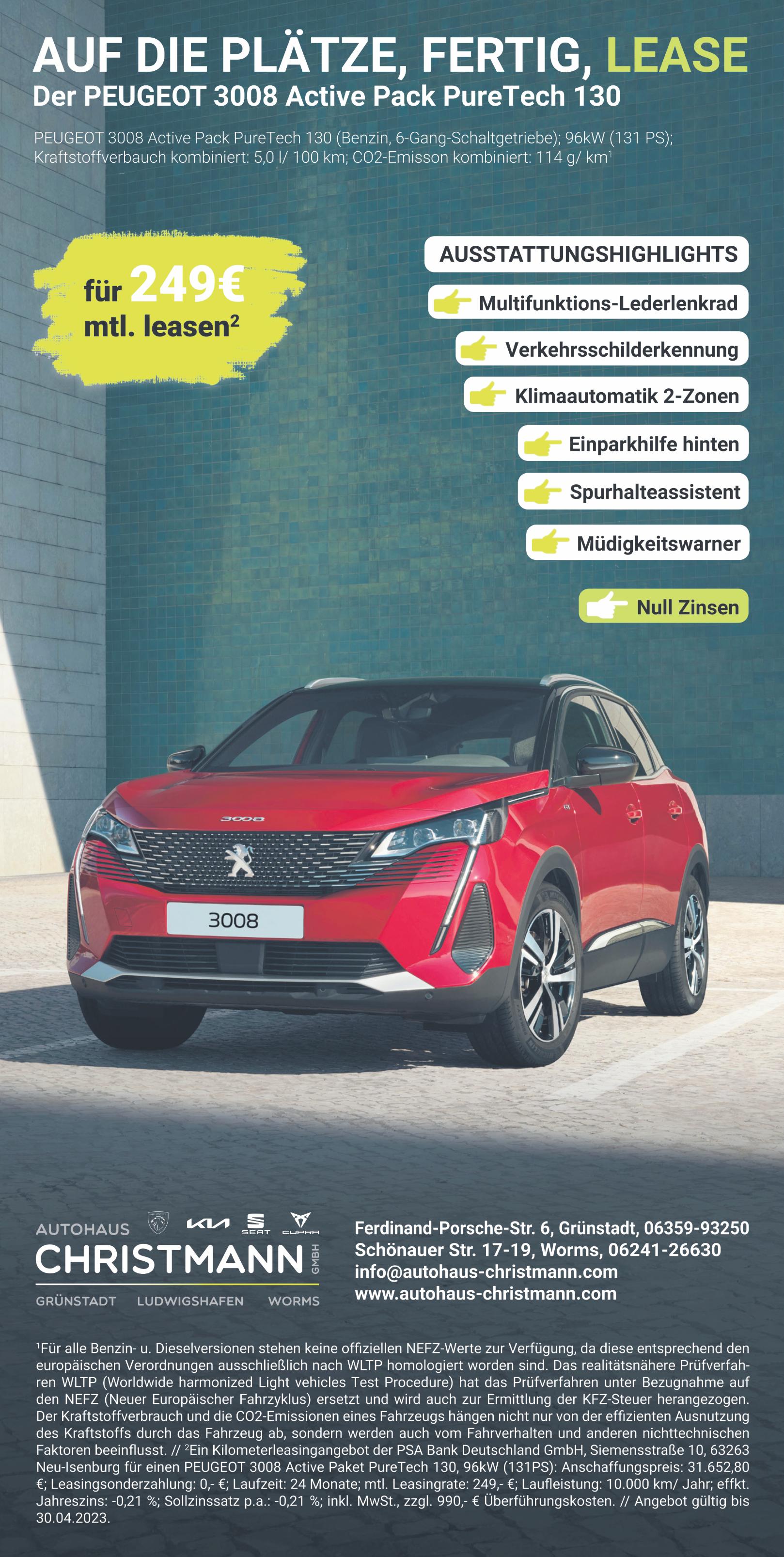 VerlagNibelungenKurierGmbH 67547 Worms·Prinz-Carl-Anlage20 ZugleichauchladungsfähigeAnschriftfürdieimImpressumgenanntenVerantwortlichen) 06241 9578-0·Fax 06241 9578-78·www.nibelungen-kurier.de·info@nibelungen-kurier.de Auflage 51.680(mittwochs) 59 360 (samstags)verteilteExemplare Kombi-PreislisteNr. 22 / 01.01.2023 DruckVRMDruckGmbH&Co.KG·Rüsselsheim VerteilungNibelungenlandVertriebsgesellschaftmbH Prinz-Carl-Anlage 20 67547 Worms·info@nvg-worms.de RedaktionAndieserAusgabehabenmitgewirkt: RobertLehr,InaPohl,FlorianHelfert 06241 9578-25 redaktion@nibelungen-kurier.de VerantwortlichfürdenAnzeigenteilunddenredaktionellenInhaltFrankL.Meinel PrivateAnzeigen-Info 06241 9578-0 FallsSiedenNibelungenKuriernichtmehrerhaltenmöchten,bittenwirSie,einenAufklebermit demHinweis„KeinekostenlosenZeitungen“anIhremBriefkastenanzubringen.Weitere Informationen findenSieaufdemVerbraucherportal www.werbung-im-briefkasten.de