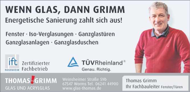 Meisterbetrieb … kompetent, preiswert, schnell Notfall-Service·Tag&Nacht MainzerStraße1·67547Worms·Tel. (06241) 977171 www.glasermeister-wollentin.de 23_01m Kurt Markert