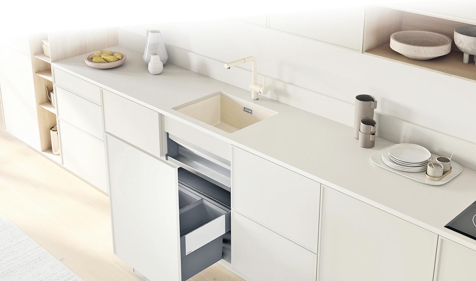 undTrendsetterBlanco.MitdieserneutralenFarbeeröffnen sichvölligneue,ungeahntePerspektivenfürdieGestaltungabwechslungsreicherKüchen–die Silgranit-Oberflächenstruktur sorgtzudemfüreinenechten Wohlfühl-Mehrwert.BLANCO UNITsin„softweiß“isteine perfekteEinheitausSpüleoder Becken,ArmaturundpraktischerAbfalllösung,dennbei diesenKüchen-Highlightswird Funktionalitätebensogroßgeschrieben.AuchinVerbindung mitMetalloberflächenaus Chrom,Edelstahloderdemneuen„Satingold“wirddiewarme undnatürlicheAusstrahlung unterstrichen.NuancenaushellemGrauundnatürlichemBei-