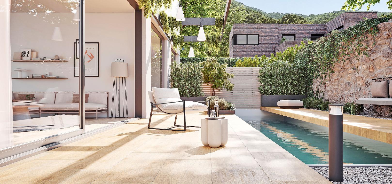 WernebenderÄsthetikauch Wertaufeinennachhaltigen, wetterfestenundpflegeleichten Bodenlegt,fürdenistdieWahl desMaterialseigentlichklar:KeramischeFliesensindechteAlleskönnerundineinerVielzahl vontrendigenOptikenund Oberflächenerhältlich.Aktuell besondersbeliebtsindgroßformatigeFliesenmiteinerStärke vonzweiZentimetern,diesich auchsehrgutloseimKiesbett oderaufStelzlagernverlegen lassen.