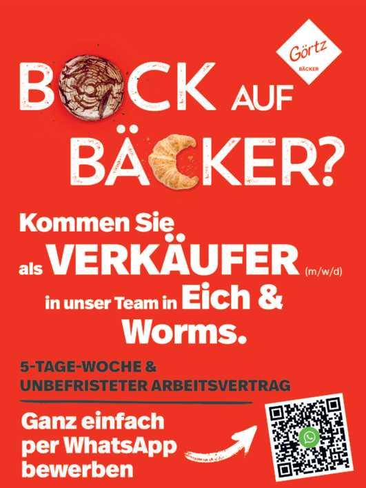 AlleSpeisenund Getränkeauch zumMitnehmen! Inhaberin JuttaJäger 23_33s AHOI! Im Zeitraum vom 26. August bis 2. September 2023 erhalten Sie bei einem Bareinkauf ab € 100,–einen Gutschein für ein Backfischbrötchen beim Wormser Fischgeschäft! Der Gutschein ist einzulösen bis 30. September 2023 Alzeyer Straße 37 67549 Worms Telefon (0 62 41) 95 60-0 Wormser Fischgeschäft Gewerbeschulstraße 17 67549 Worms Tel. (0 62 41) 3 04 99 30 Di.–Fr. 8–18 Uhr & Sa. 8–13 Uhr