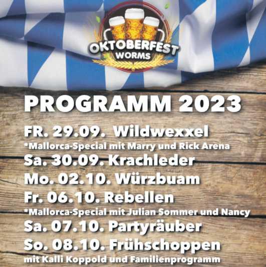 Auch im Wormser Festzelt stehen die bewährten Veranstaltungen auf dem Programm: Zum einen dürfen sich Senioren wieder auf die Rückkehr des Seniorennachmittags am Donnerstag ab 14.30 Uhr freuen. Beim „Wormser Abend“ am Donnerstag ab 19 Uhr treten bekannte Gesichter der Wormser Brauchtums- und Fastnachtszene auf der Bühne mit Gesangs- und Tanzeinlagen auf. Erstmals wird hierfür kein Eintritt verlangt – Dank der Unterstützung der Volksbank AlzeyWorms eG.