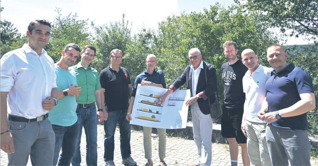 Stadtentwicklungsdezernent,Architekten,LehrkräfteundSchulleitungdiskutierendiePlänefürdieContainergebäudeamzukünftigenStandort. Foto:StadtWorms