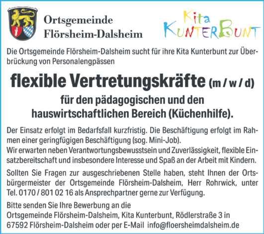 Für einen Haushalt im Raum Worms suchen wir eine Hauswirtschaftskraft (m/w/d) für alle im Haushalt anfallenden Arbeiten. Die Tätigkeit kann auch in Teilzeit ausgeübt werden. Wir freuen uns auf Ihre Bewerbung bitte zunächst zu richten an Tel. (0173) 3 02 77 68