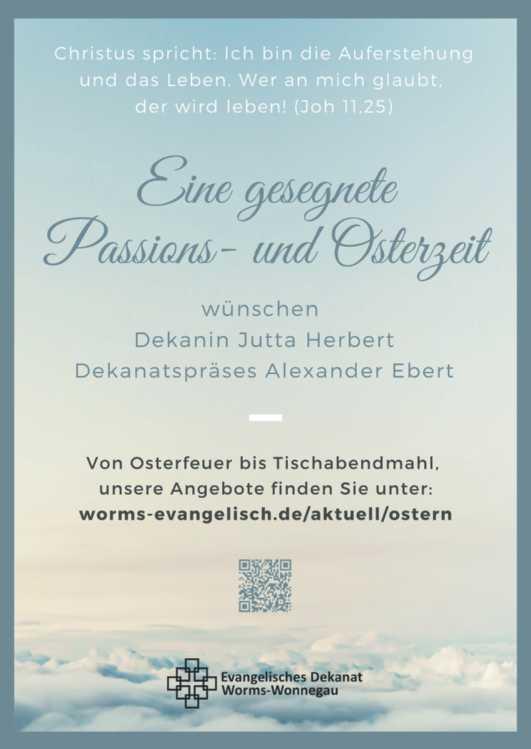 Der Ökumenische Chor Eich lädt ein zu seiner Veranstaltung am Karfreitag, dem 29. März, um 11.30 Uhr, in der Trauerhalle auf dem Friedhof in Eich, Hammer Straße, 67575 Eich. Das Thema des kleinen Konzertes lautet „Lieder, Musik und Texte zur Passionszeit". Der Eintritt ist frei.