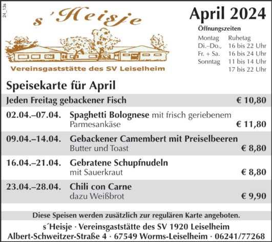 HorchheimerStraße47a 67547Worms Mo.-Fr.,11–20Uhr
