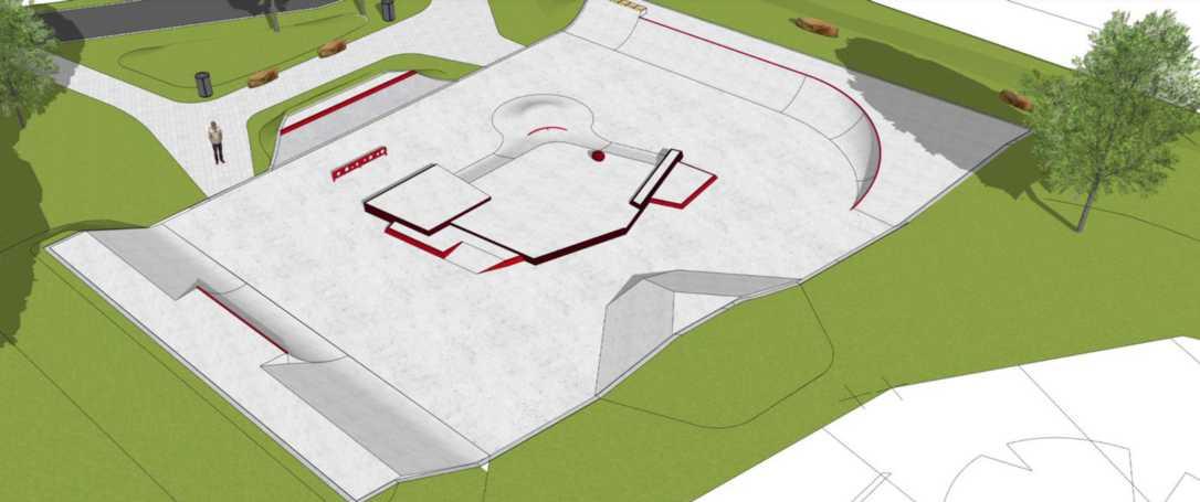 Für die Jugend und Skater aller Altersklassen plant die Stadt Osthofen unter Bürgermeister Thomas Goller ein im näheren Umfeld einzigartiges Projekt. Graphik: Planungsbüro „Landskate“