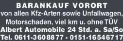5,–10,– Für interne Bearbeitung bitte frei lassen: Geben Sie am Ende Ihres Textes bitte Ihre Telefon-Nummer an oder vermerken Sie „Chiffre“, falls gewünscht. *Kein Tausch gegen Wertgutscheine Fotoanzeige nur 5,– EUR zusätzlich! Private Kleinanzeigen im Nibelungen Kurier am Samstag KFZ-MARKT 3000/3200 WOHNWAGEN/CARAVAN 36/37WW WirkaufenWohnmobile +Wohnwagen Tel. (03944) 36160 www.wm-aw.deFa. 23_01m AKTION:WIRKAUFENIHRAUTO egal,obMotorschaden,hoherKilometerstandodersonstigeMängel. WirsindanjedemFahrzeuginteressiert!EinAnrufschadetnicht: Telefon(0163)7940925
