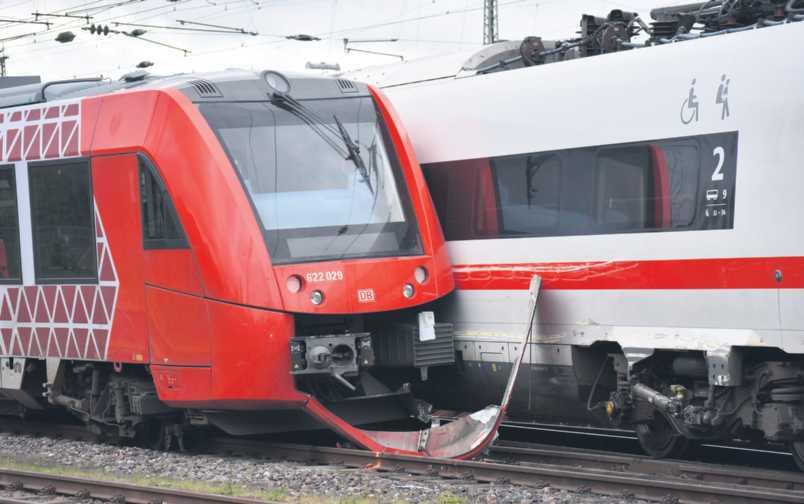 Die Regionalbahn und der ICE kollidierten seitlich.