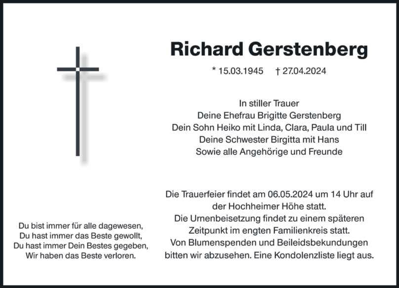 Liebe Kundinnen, liebe Kunden, zum 1. Mai 2024 übergebe ich mein Optik-Geschäft „die brille“ an Frau Anne Klein und Herrn Kurt Klein.