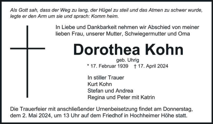 Sa., 4. Mai, 10 Uhr: Konfirmation mit Abendmahl in Leiselheim