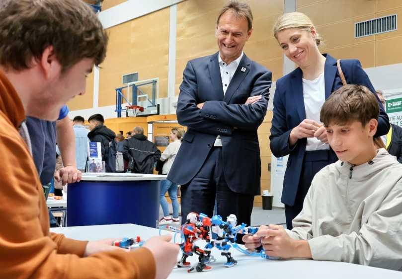 ginnt etwas mehr als die Hälfte eines Altersjahrgangs eine Ausbildung in einem anerkannten Ausbildungsberuf. Über 140 Berufe und schulische Ausbildungsgänge stellen 93 Ausbildungsbetriebe auf der Berufsausbildungsmesse (BIM) unter dem Motto „Entdecke deinen Traumberuf“ im Bildungszentrum Worms vor. Die Messe wurde von IHK-Vizepräsident Michael Kundel und Bürgermeisterin Stephanie Lohr am gestrigen Freitagmorgen eröffnet.