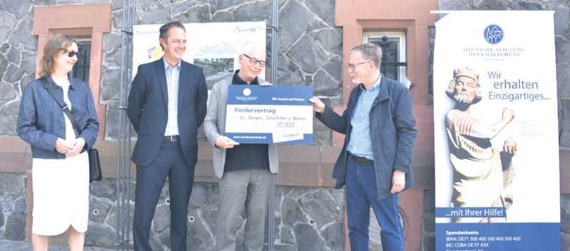 Gemeinsam mit Marco Mauer von Lotto Rheinland-Pfalz, das die Stiftung in ihrem Ansinnen unterstützt, wurde ein Förderscheck in Höhe von 30.000 Euro an die Eigentümergemeinschaft des unter Denkmalschutz stehenden Objektes überreicht.