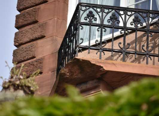 Die aktuellen Schäden des gut gepflegten Gebäudes gehen auf Verwitterungsprozesse des Baumaterials zurück.