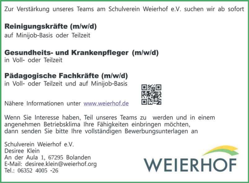 Trauerinserate: Freitag, 10. Mai 2024, 10 Uhr Wir bitten um Beachtung: 24_18s 23_06s Gesellschaftfür PersonaldienstleistungenmbH Römerstraße72 67547Worms T 06241/9727-0 www.ame-zeitarbeit.de IhreBewerbungenrichtenSiebittean worms@ame-zeitarbeit.de WirberatenSiehinsichtlichIhrerberuflichen EntwicklungsmöglichkeitenindenBereichen Industrie,Handwerk,LogistikundOffice!