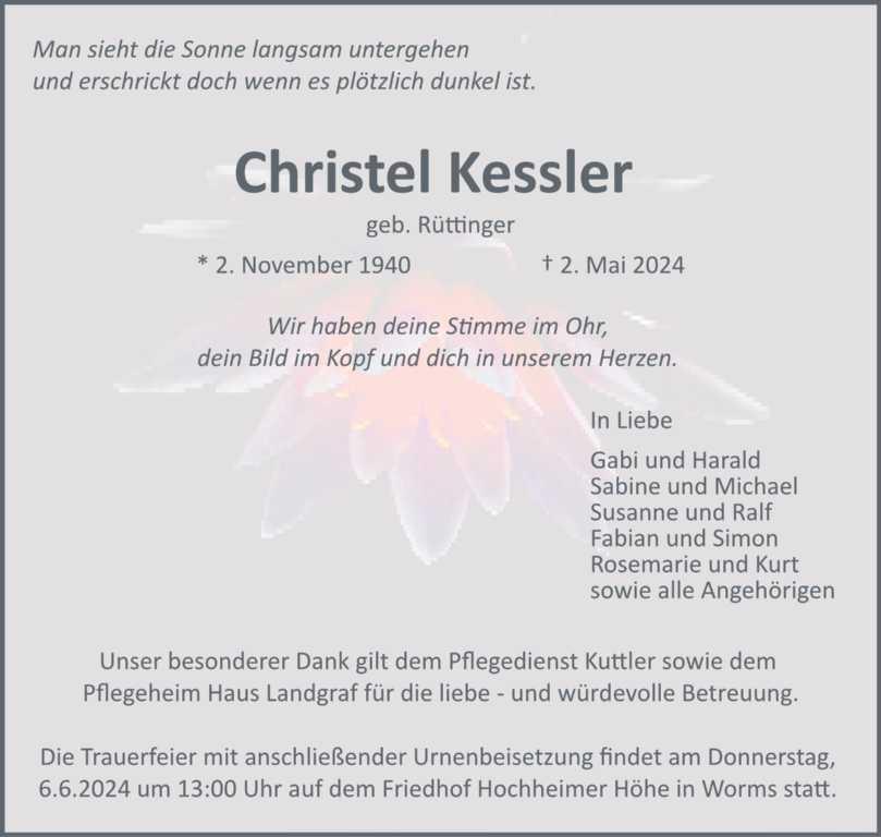 Anzeigenschluss für Trauerinserate: Freitag, 31. Mai 2024, 10 Uhr