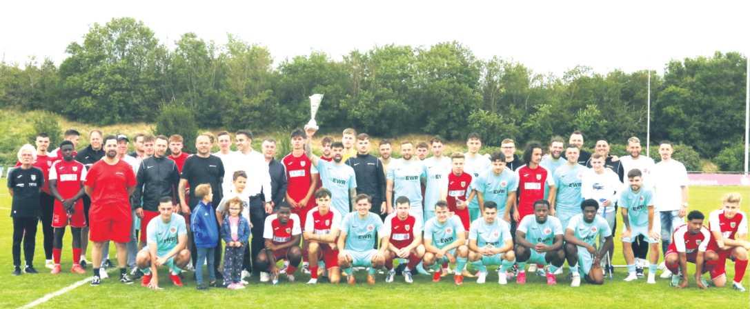 Bei einem Konter verpasste Aleksander Biedermann genau dieses Abspiel und vertändelte den Ball. Die Partie war sehr umkämpft mit beidseitigen Zweikämpfen, die nicht immer an ein Freundschaftsspiel erin-