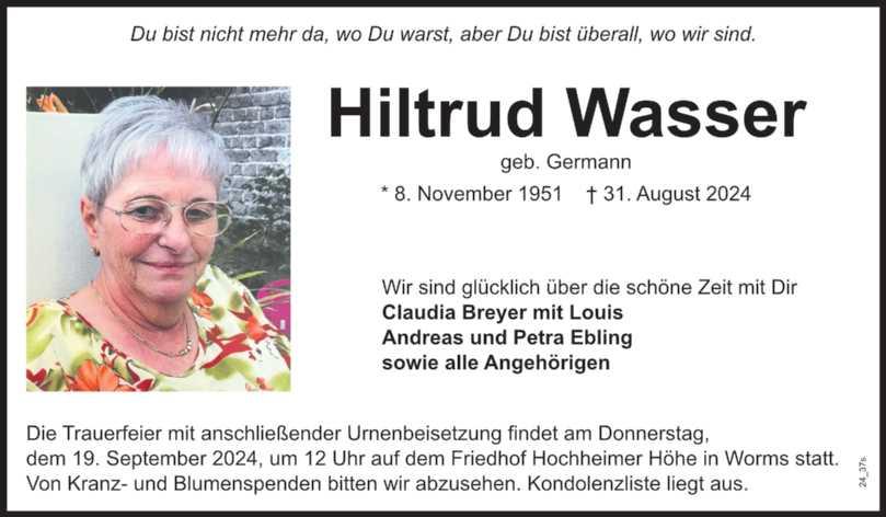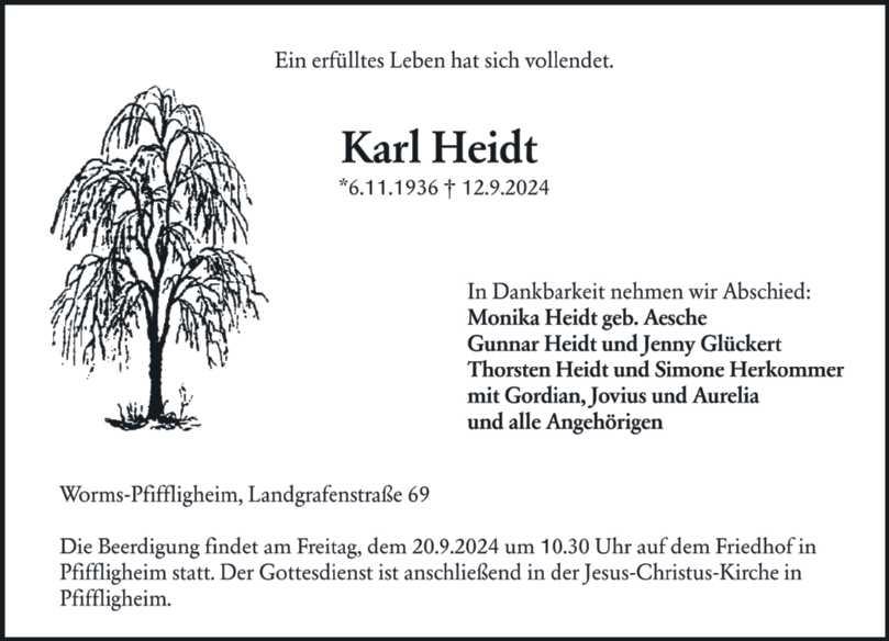 Am Mittwoch, dem 18. September, findet um 13.30 Uhr die Frauenhilfe der evangelischen Kirche in Heppenheim im Gemeindehaus, Mühltalweg 2, und um 14.30 Uhr in Offstein im dortigen Gemeindehaus, Kindergartenstraße 4, statt.