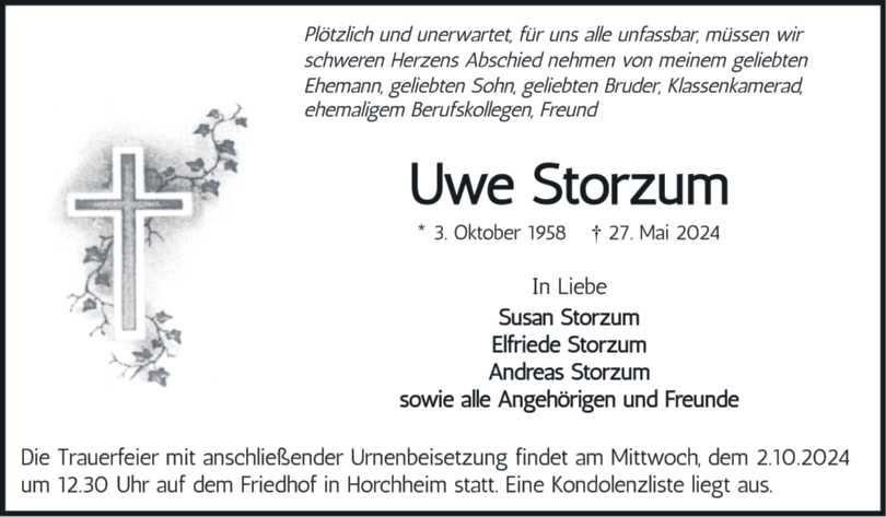 Ausgabe am Samstag, 5. Oktober 2024 ist der Anzeigen- & Redaktionsschluss bereits am Mittwoch, 2. Oktober 2024, 13 Uhr Für dringende Traueranzeigen: Freitag, 4. Oktober 2024, 10 Uhr