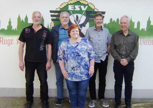 Einige der Jubilare des ESV: 2. Vorsitzender Dirk Weiler, Friedrich Wolf, Sigrid Born, Hans-Richard Werz sowie der 1. Vorsitzende Claus Scherer (von links).