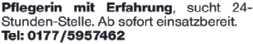 Haushaltshilfe auf Minijob-Basis gesucht. Wo., 9–13 Uhr, 2–3 x/Woche. Telefon (01 75) 5 64 11 92