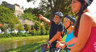 ● In Kronau verlassen die Radler die Rheinebene und durchqueren den Kraichgau, das Land der 1.000 Hügel. In Bad Schönborn kann man eine Pause in d e r Therme einlegen, bevor es über den Wein- und Wallfahrtsort Malsch nach Angelbachtal mit sei-
