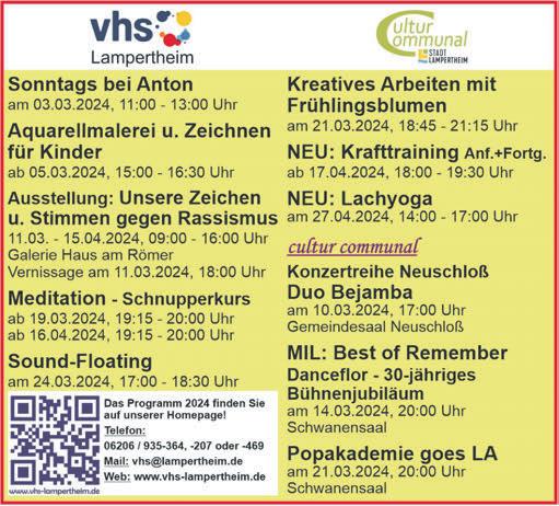 BÜRSTADT–AmDienstag,dem 27.Februar,findetum19.30Uhr imSitzungszimmerdesRathauses, Rathausstraße2,eineöffentliche SitzungdesAusschussesfürBauundStadtentwicklungstatt.zg MärzfeierderSPD Lampertheim Auchin2024isteswiedersoweit: DieLampertheimerSPDlädtzuihrer traditionsreichenMärzfeierein. GastrednerinwirddiesmalKatrin Hechlersein.SiefungiertalsStaatssekretärinimhessischenSozialministerium.ThemaihresReferates wird„SozialePolitikfürHessen“sein. EbensostehenMitgliederehrungen an.DieVeranstaltungstartetam Sonntag,den17.Märzum11Uhr imSaaldesGasthauses„ZurKrone“ inderLampertheimerRömerstraße. EingemütlichesMittagessenläutet dengeselligenTeilgegenMittagein. AlleInteressiertensindherzlicheingeladen. zg