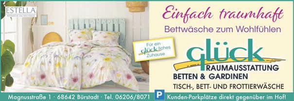 Anzeige BesuchenSieunsereAusstellung Worms PlanungVerkaufMontageService GAHN TORE & ANTRIEBE FERTIGGARAGEN AMGALLBORN22 • WORMS www.garagen-torsysteme.de ✆ 06241 26267 IhreAnsprechpartner: HildegardSchwara: Tel.06206-945026•Fax06206-945010•schwara@tip-suedhessen.de HeikoSteigner: Tel.06206-945018•Fax06206-945010•steigner@tip-suedhessen.de PetraBeck: Tel.06206-945019•Fax06206-945010•beck@tip-suedhessen.de StephanieZimmermann: Tel.06206-945019•Fax06206-945010•zimmermann@tip-suedhessen.de WerbenauchSieerfolgreichbeiunserenSonderthemen! info@roessling-gmbh.de www.roessling-gmbh.de Wilhelmstraße8-10 68623Lampertheim Telefon+4962062905 Telefax+4962064104 DarmstädterStr.150•68647Biblis Malerbetrieb: Tel.06245/298790 FarbenFachmarkt: Tel.06245/99610 IhrkompetenterAnsprechpartnerfürBadsanierungauseinerHand Heizungsbau GmbH Heizung·Lüftung·Solar·Klima·Gas·Wasser BürstädterStraße41a·68623Lampertheim Tel.06206/4343·Fax06206/59480 BetteHomeOvalSilhouette SAMSTAG,27.APRIL2024 13 Bismarckstraße668623Lampertheim Tel.06206-5803304