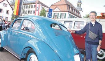 BernhardAppeltundseinblaueVWKäfermitBrezelfenster,Baujahr1951, warenimletztenJahreinerderzahlreichenHingucker.