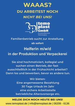 KREISBERGSTRASSE–Die SelbsthilfegruppeSchlafapnoeAtemstillstandViernheimlädtam Donnerstag,20.Juni,um18:30 UhrinderKulturscheune,Wasserstr. 20,inViernheimein.EineAnmeldungistnichterforderlich. WolfgangKempf,Apothekerin Viernheim,wirdzumThema„ERezept,Medikamentenmangelu. HilfeinderApotheke“referieren. EineMaskenberatungfindetum 17:30Uhrstatt.Anmeldungen hierzuwerdenbiszum17.Juni telefonischunter01629252197 oderperMailanroos@schlafapnoe-kreis-bergstrasse.deentgegen genommen.Infosunterschlafapnoe-kreis-bergstrasse.de.zg