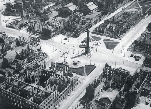 LuftaufnahmevomLuisenplatzeinenTagnachderBrandnachtvom11.September1944,ausnordnordwestlicher Richtung. Foto:UnitedStatesAirForce/Wikipedia