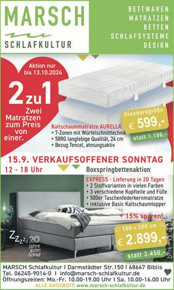 MARSCHSCHLAFKULTUR: Vom13.September bis13.OktoberVorteilspreissichern „2zu1-Aktion“einweiteresHighlight