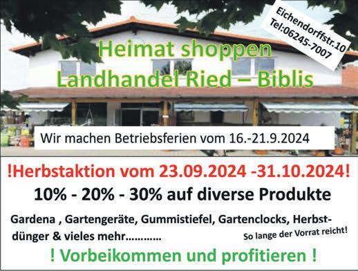 LANDHANDELRIED: Herbstaktionvom23.Septemberbis31.Oktober mitjederMengeRabatte Vorbeikommenund profitieren!