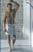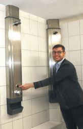 DieneueDuschanlage(hierbeiden Herren)blitztundblinktinEdelstahl. KnopfdrückenundTemperaturwählen –Biedensandbäder-Geschäftsführer MariusSchmidtstelltedieNeuerungen vor.AlsnachhaltigeInstallationstoppt dasWassernacheinerMinute. Fotos:HanneloreNowacki