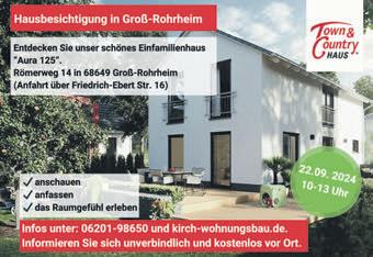 GROSS-ROHRHEIM–Vom15.bis 29.September2024feiertdie evangelischeKircheGroß-RohrheimeingroßesJubiläum.Auftakt istam15.Septemberum14Uhr einFestgottesdienst.PfarrerDr. DominikWeylführtdurchdiesen einmaligenGottesdienstund CarstenTag,derVorsitzendeder DiakonieHessen,wirddieFestpredigthalten.AndiesemTagzudem derTafelaktionstagderDiakonie statt.Lebensmittelspenden,diedie Konfirmandenentgegennehmen, könnengernemitgebrachtwerden. FürjedeSpendegibteseinen GutscheinfürdieFotobox.Im AnschlussandenGottesdienstsind alleherzlicheingeladen,beiKaffee undKucheninderKirchstraße einenNachmittagmithistorischem Hintergrundzuverbringen.Dieser wirdvomFördervereinzurErhaltung derevangelischenKirchevorbereitet.DasgesamteProgrammder Festwochefindetmaninden Schaukästenoderwww.dekanatbergstrasse.ekhn.dezg
