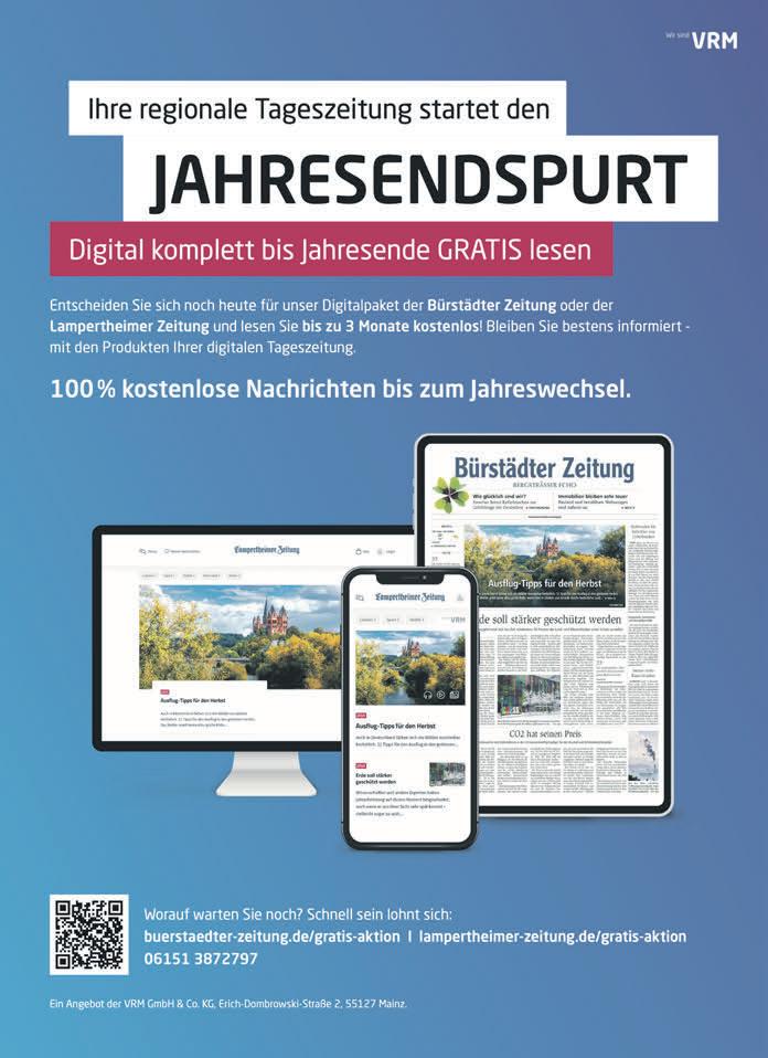 „WerdensieselbstTeildesProjektes“,appellierenSilkeVetterKisselundVolkerFinkelmeyer anErwachseneausBürstadtund Umgebung.„LeuchtendeAugen undlachendeGesichterbeiden KindernsinddieschönsteBelohnung”,wissenbeide.WerpersönlichkeineZeiterübrigenkann, umdieKinderbeidenUnternehmungenzubegleiten,kanndas Projektauchfinanziellunterstützen.SämtlicheKostenfürdie AusflügewerdenvonderBürgerstiftunggetragen.WeitereInfos zumProjektgibtesaufderHomepagederBürgerstiftungunter www.buergerstiftung-buerstadt.de WereinKindhatoderkennt,das gerneteilnehmenmöchte,kann siesichunterfolgenderTelefonnummer(0172/6510507)melden odereineMailanr.engert@buergerstiftung-buerstadt.desenden. SteffenHeumann